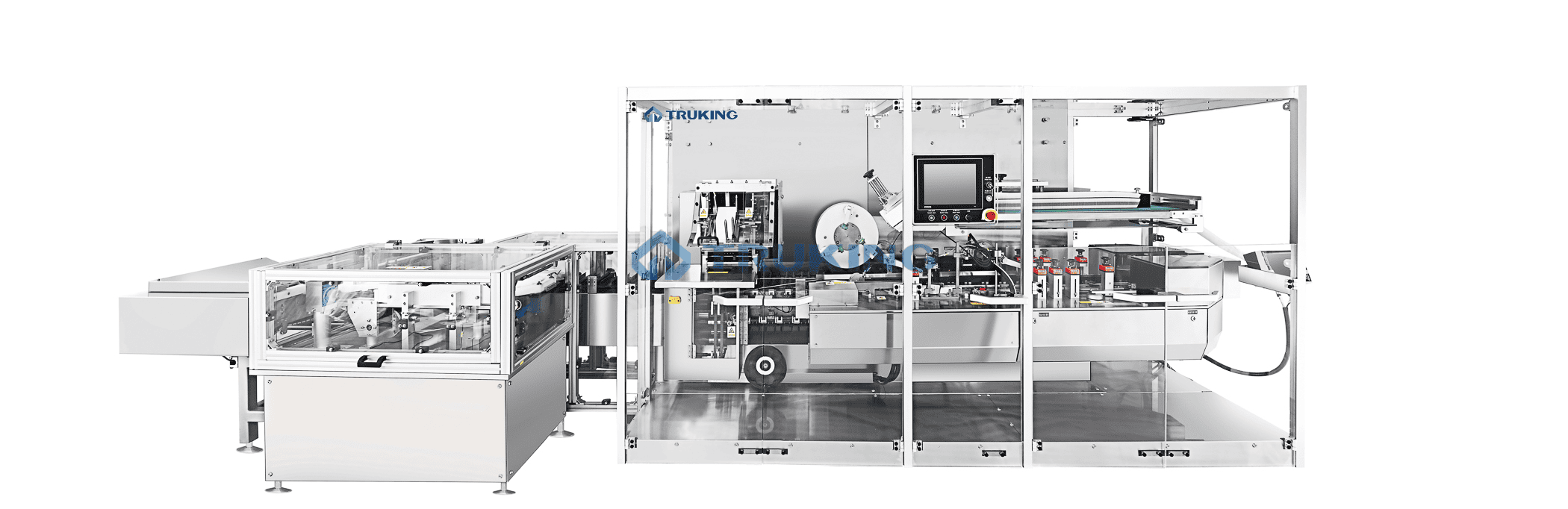 TRUKING series Automatic cartoner machine is a high capacity versatile unit catering to wide range of containers such as ampoules, vials, oral liquids, BFS, cartridge, blisters etc. with state of art feeding system for single, combi, triple packs with varies unique attachments.